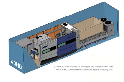 Elektrik kabinet⁄ lazer kaynağı⁄ pneumatik sistem⁄ lubrikasyon sistemi⁄ masa sürücü motorları bütün ana çerçevesinde birleştirilmiş, yerleştirmeye, yüklemeye ve korumaya kolay kolay, üretim alanının kullanımı hızını etkili olarak geliştirir ve makineni azaltır