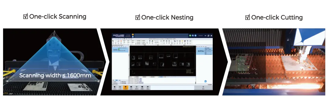 Otomatik görsel denetim teknolojisine dayalı akıllı kalan malzeme işleme çözümü, kalan levhaya istediğiniz sayıda parça geometrisini yerleştirir. Kalan malzeme işleme alanı, çalışma tablasının tamamını kaplar, tek seferde doğru kalan malzeme konturu tanıma özelliğiyle çok plakalı eş zamanlı taramayı destekler ve hızlı üretim optimizasyonu ve uygun maliyetli malzeme kullanımıyla geleneksel verimsiz kalan malzeme işleme yöntemlerinde devrim yaratır.