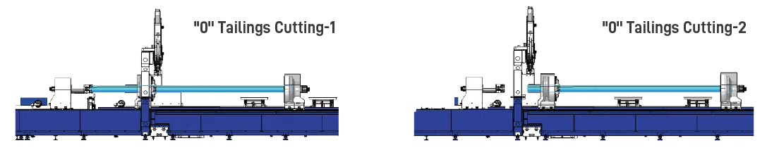 Kesme başlığı, merkez aynayı geçerek diğer yönde kesebilir ve böylece gerçekten sıfır hurda elde edilerek malzeme kullanımı iyileştirilir.
